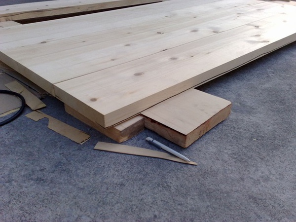 選擇幾片沒裂痕且厚度一致的木板來拼接桌面。由於每片木板的兩側並非直線,所以要自行裁切並刨平,才能讓兩片木板的間隙控制在可接受範圍內。