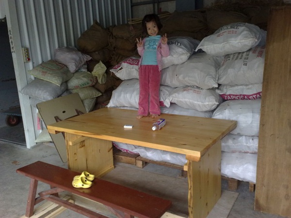將桌子從大溪運往新店。因為每一片木板都是用螺絲釘固定,所以可以方便的用小客車運載。