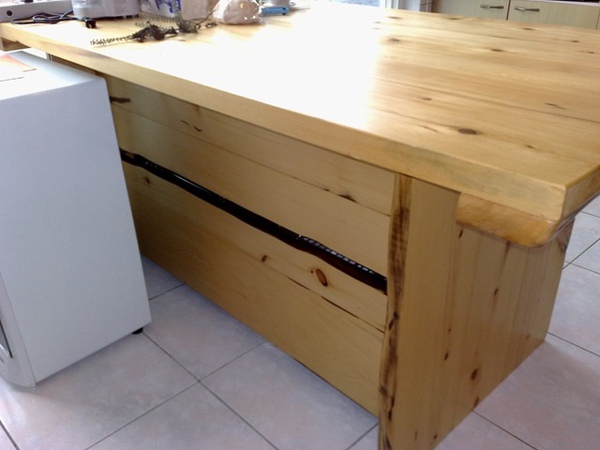 在http://images.google.com.tw 搜尋kitchen island關鍵字,找到一些照片。不過手邊這些4公分厚木板似乎不適合這些設計。